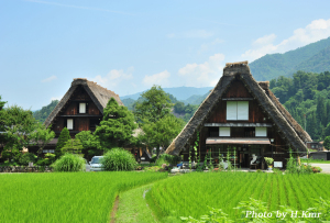 「白山スーパー林道」の12番目の一番長いトンネル内の中間地点に石川県と岐阜県の県境があります。岐阜県に入り林道を下って、林道を出たところが白川村です。今年の2月に「ライトアップの白川郷」の撮影に来ましたが、同じ経路の「白川郷」の夏風景を撮影しました。30℃を超える炎天下だったので何度も日陰に入り、冷たいものを飲みながら休んでいました。